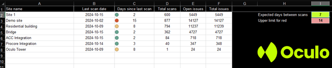 You can also download our pre formatted Excel template where you can paste the .csv data to provide a formatted output, including colour coded Days since last scan