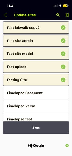 - You will be asked to sync your sites - please do this for any site that you wish to scan. Keeping sites synced ensures that the latest floor plans and configuration is available to you, and will need to be done when changes are made to your site.