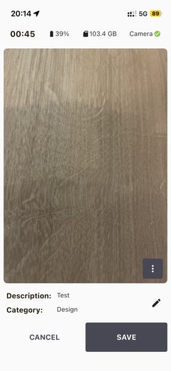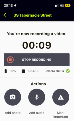 - Once you confirm your starting location, the camera automatically starts recording - you may hear a beep and the camera's light will go flashing red. Most importantly, your Oculo app screen will now be showing you a scan timer and the scan action buttons.