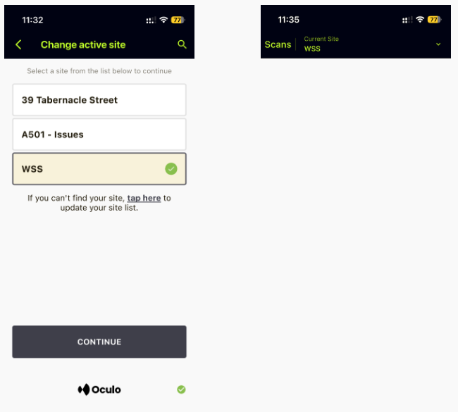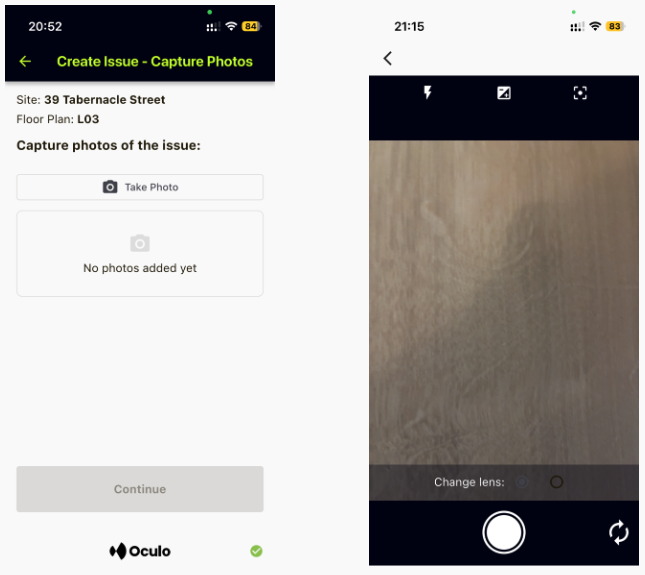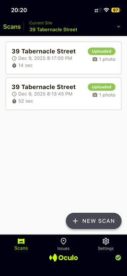 The Oculo mobile app is a tool to support capturing data in the field. It can be used to create new scans, and add new issues whilst on site.