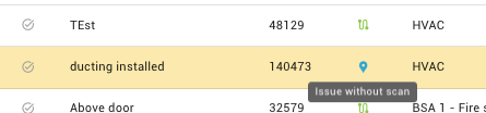 - Blue pin indicates an issue created from mobile or web without a scan ("Issue without scan")