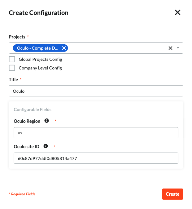 - Input your Oculo Region (uk, eu, or us)